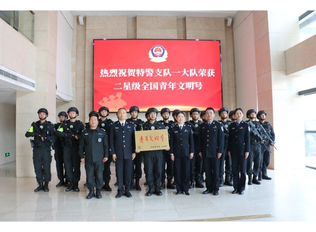 11月28日上午,市局举行首批“二星级全国青年文明号”授牌仪式。市局党委委员、政治部主任杨忆,特警支队支队长王卫国出席仪式,仪式由特警支队副支队长唐文明主持,特警支队一大队全体民警参加。