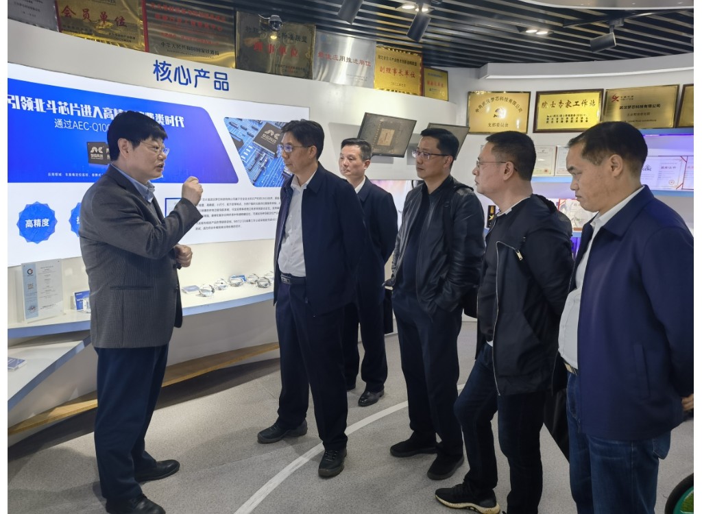 唐文发同志一行首先参观了梦芯科技展厅,全面了解了企业发展历程以及北斗高精度系列产品情况,随后开展座谈交流。