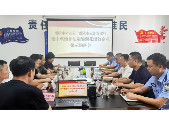 9月11日,醴陵市公安局、醴陵市应急管理局召开集中整治非法运输烟花爆竹涉案企业警示约谈会,对8家涉案企业予以警示约谈。