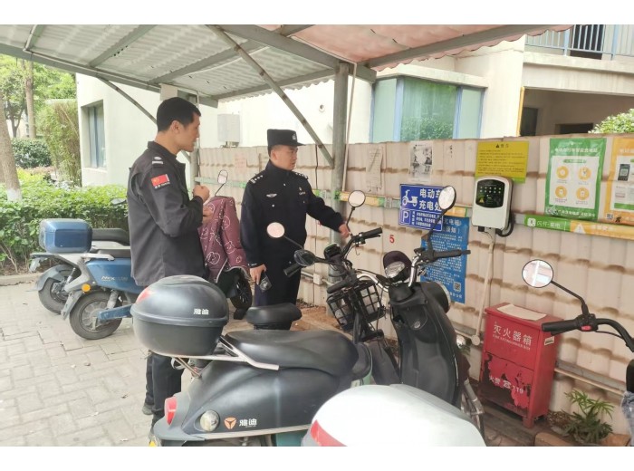 期间,社区民辅警深入辖区住宅小区,对小区电动自行车、电动摩托车停放场所进行细致检查,重点查看充电桩、消防器材等设施是否配备齐全且完好有效,并对小区楼栋疏散通道、安全出口、门厅等关键区域开展巡视检查,发现违规停放电动车的居民,民警对其进行消防安全教育,规劝居民将电动车移放至室外安全区域,确保消防通道通畅,消除潜在安全隐患。同时,民警通过小区居民微信群推送“两电”安全宣传提示、火灾案例警示教育,提醒居民重视电动车停放充电安全问题,不要在室内停放电动车或进行充电。