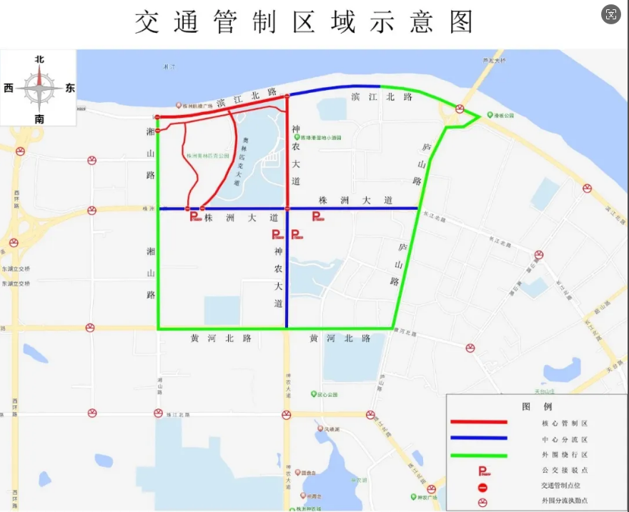 实施交通管制措施期间,请广大市民和驾驶员自觉遵守交通法规,提前规划出行路线,服从公安交警和现场交通管理人员的指挥。市民正常驾车通勤、出行时,可提前通过高德、百度等地图导航软件关注实时交通路况,主动避开神农大道、株洲大道、奥林匹克大道、滨江北路、湘山路、庐山路、黄河北路等路段,选择外围出行,同时为避免交通拥堵,建议广大市民乘坐公共交通工具出行。交通管制期间,给广大市民造成的不便深表歉意,敬请理解支持。