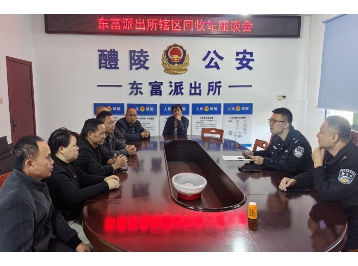 10月23日,醴陵市公安局东富所社区民警组织10家废品回收站负责人开展座谈会。此次会议有三个核心目的,一是加强协作,增加破案条件;二是降低辖区盗窃案件发案率;三是规范回收站经营。